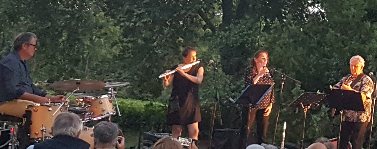 Cette année encore notre soirée champêtre a ravi un auditoire attentionné à l’écoute du Carré d’As qui ont merveilleusement interprété une variation de chansons de Ferrat, Brassens, Nougaro ou Vian qui ont marqué toute une génération et restent toujours d’actualité. Les 4 interprètes ont donné un sens magique à cette soirée. Bernard Fougeirol, à la guitare, a animé le spectacle avec beaucoup de brio, sa nièce Estelle nous a charmés à la flûte traversière et au chant, le batteur, Olivier Chambonnière les a accompagnés de sa contagieuse énergie, quant à la chanteuse de jazz Lis Bouvier, elle nous a tous bluffés par sa talentueuse interprétation avec sa voix « jazzy « alors même qu’elle remplaçait au pied levé le titulaire empêché.